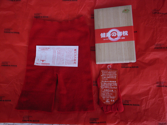 深紅の毛糸のパンツ。しかも100%カシミヤ製。お婆ちゃんの原宿:巣鴨の商店街で探してくれたものだ。その夜「また~、冗談がきついよ」と反応した私だが、この5年間このパンツにはお世話になりっぱなし。なにしろ驚くほどに温かいのだ。先見の明ある友人に感謝あるのみ。